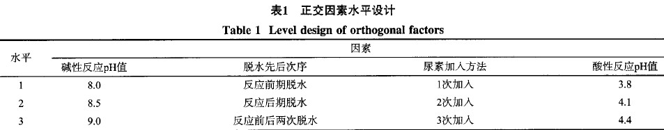 呋喃樹(shù)脂的合成工藝分為以下幾個(gè)步驟:配料、堿性加成反應(yīng)、酸性縮聚反應(yīng)、中合反應(yīng)、脫水和中止反應(yīng)。在堿性加成反應(yīng)中,甲醛和尿素反應(yīng)生成一羥基甲脲和二羥基甲脲;在酸性縮聚反應(yīng)中糠醇與羥甲基脲發(fā)生縮聚反應(yīng),形成大分子直鏈?zhǔn)骄酆衔镞秽珮?shù)脂,同時(shí)還包含一部分糠醇的自聚反應(yīng);試驗(yàn)采用真空脫水,水分包括原料帶入的水分和縮聚形成的水分。