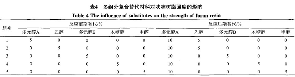 2.3糠醇的部分替代試驗(yàn)結(jié)果與分析