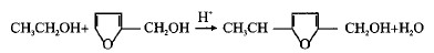 另外,IR曲線B中,呋喃環(huán)C=C雙鍵伸縮振動(dòng)峰(1505cm-1),呋喃環(huán)上C—H變形振動(dòng)吸收峰(1221cm-1,1149cm-1,1011cm-1),C—H面外彎曲振動(dòng)(746cm-1)均減弱,(914cm-1,885cm-1,815cm-1)是呋喃環(huán)面外變形振動(dòng)吸收峰也顯著減弱,說(shuō)明乙醇與糠醇可能發(fā)生了縮聚反應(yīng),推測(cè)其具體反應(yīng)過(guò)程為: